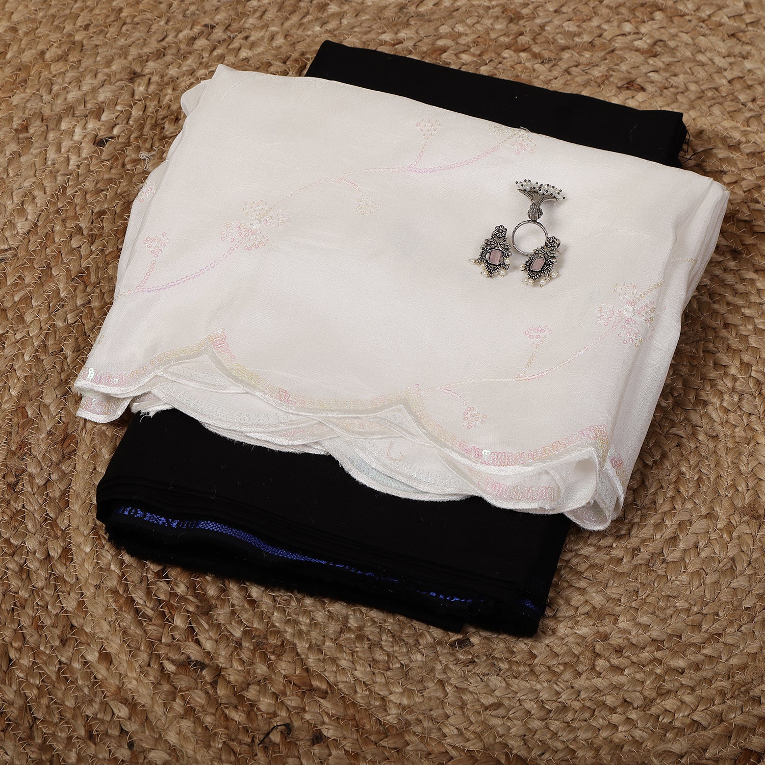 Black Linen Unstitched Suit Set with White Sequins Embroidered Dupatta