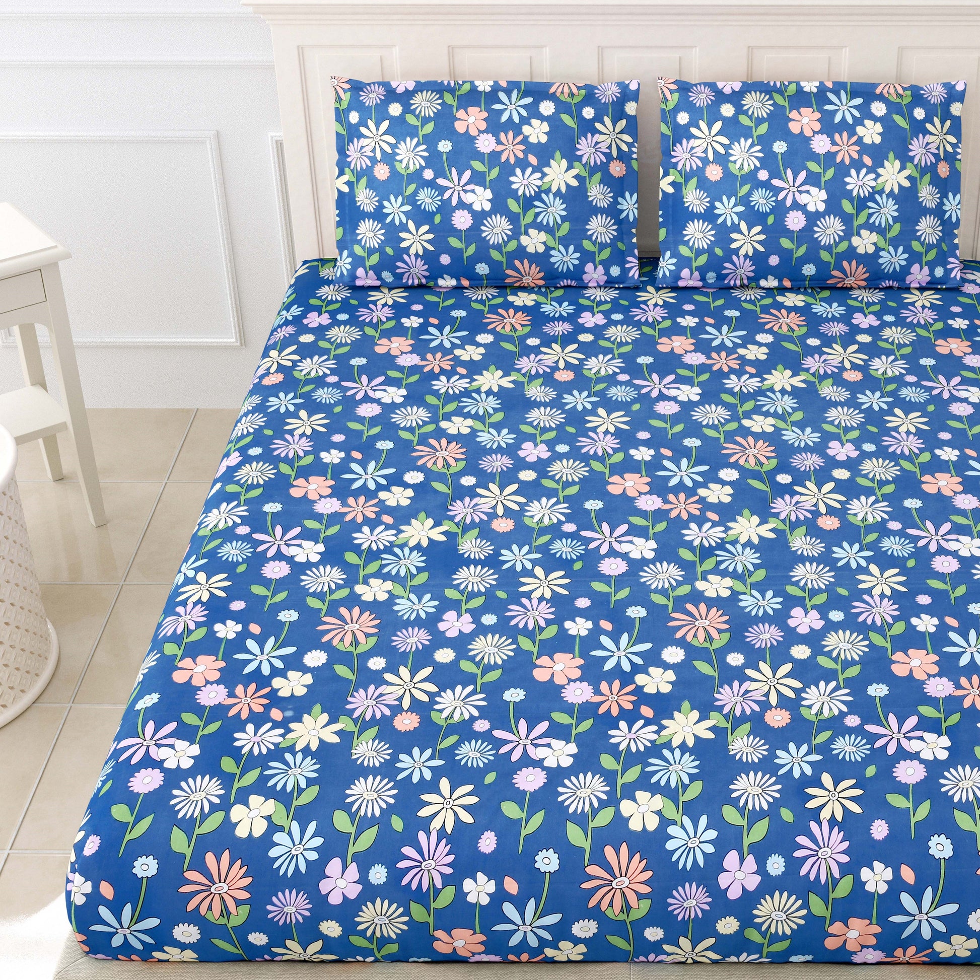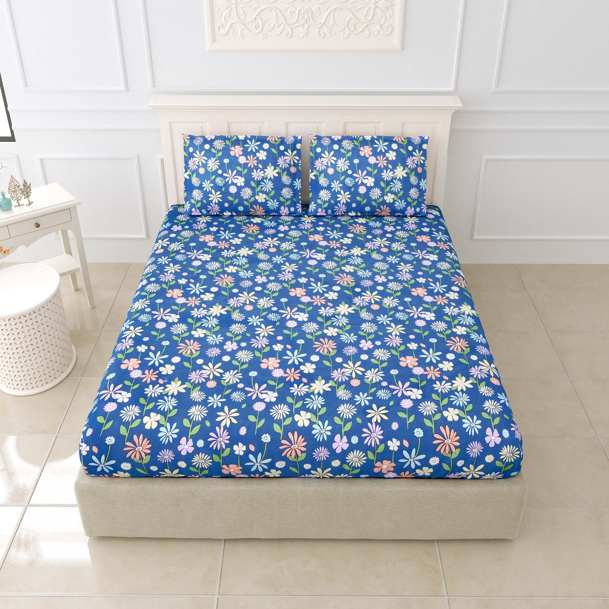 Our Print Collection consists of Floral aura. Get that modern, contemporary feel in your décor. This is up-to-date and made during what we refer to as the modern age. Blue Base and Multi Flower print gives a subtle yet bright look to your Bedroom decor.
