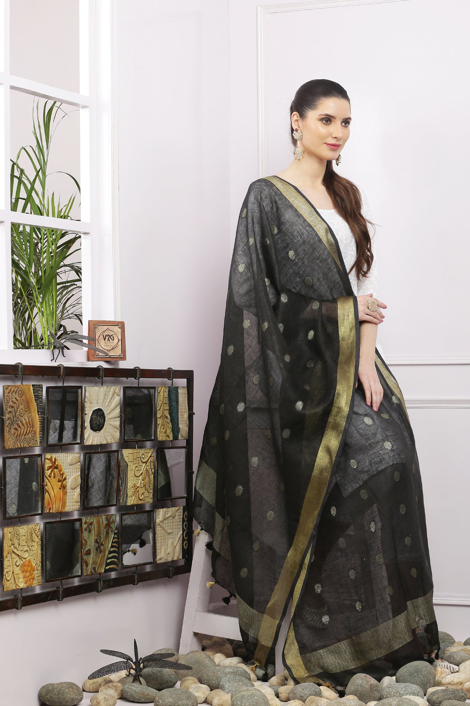 Color- Black n Gold Zari Border and Polka Dots Butis