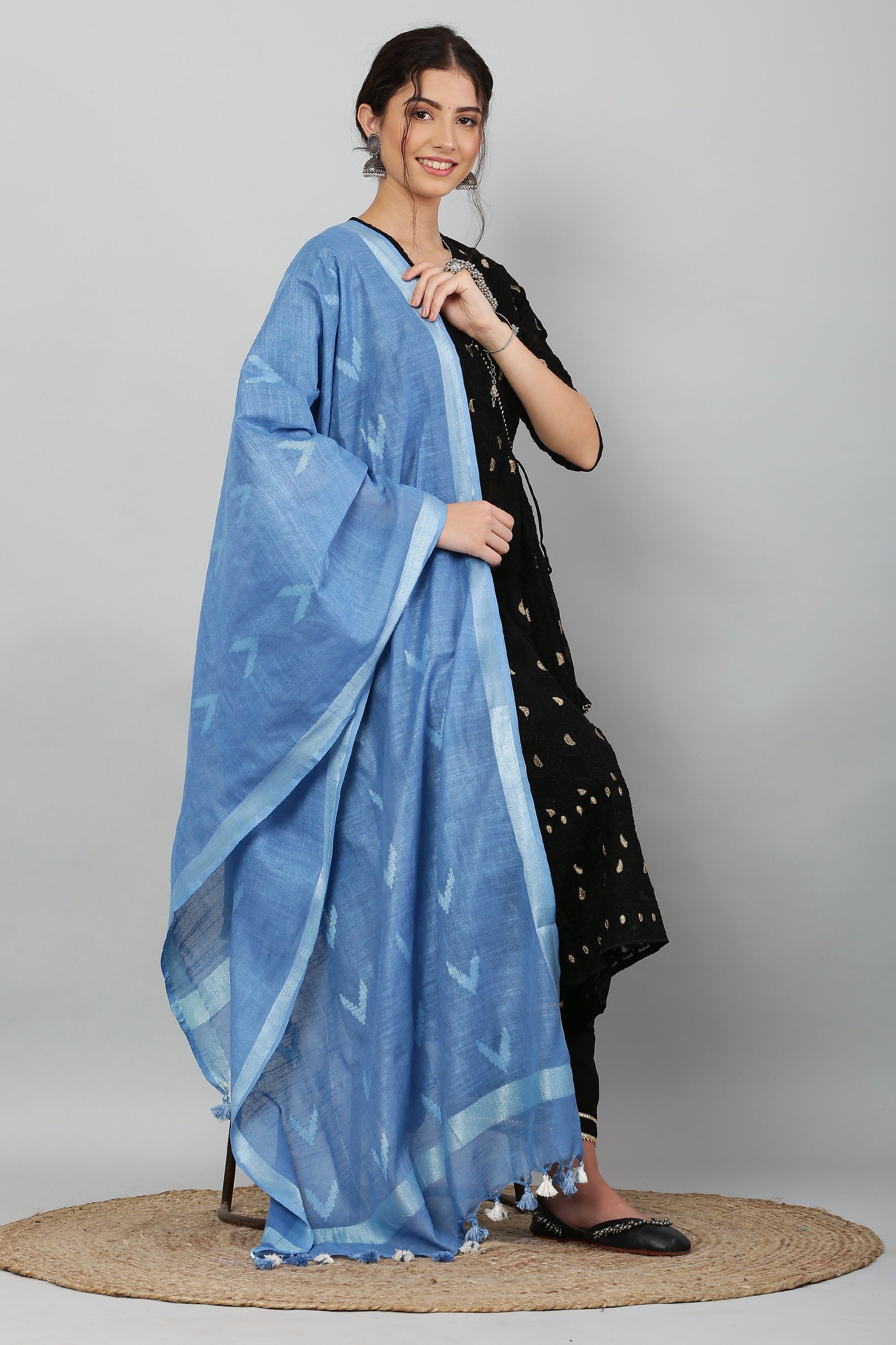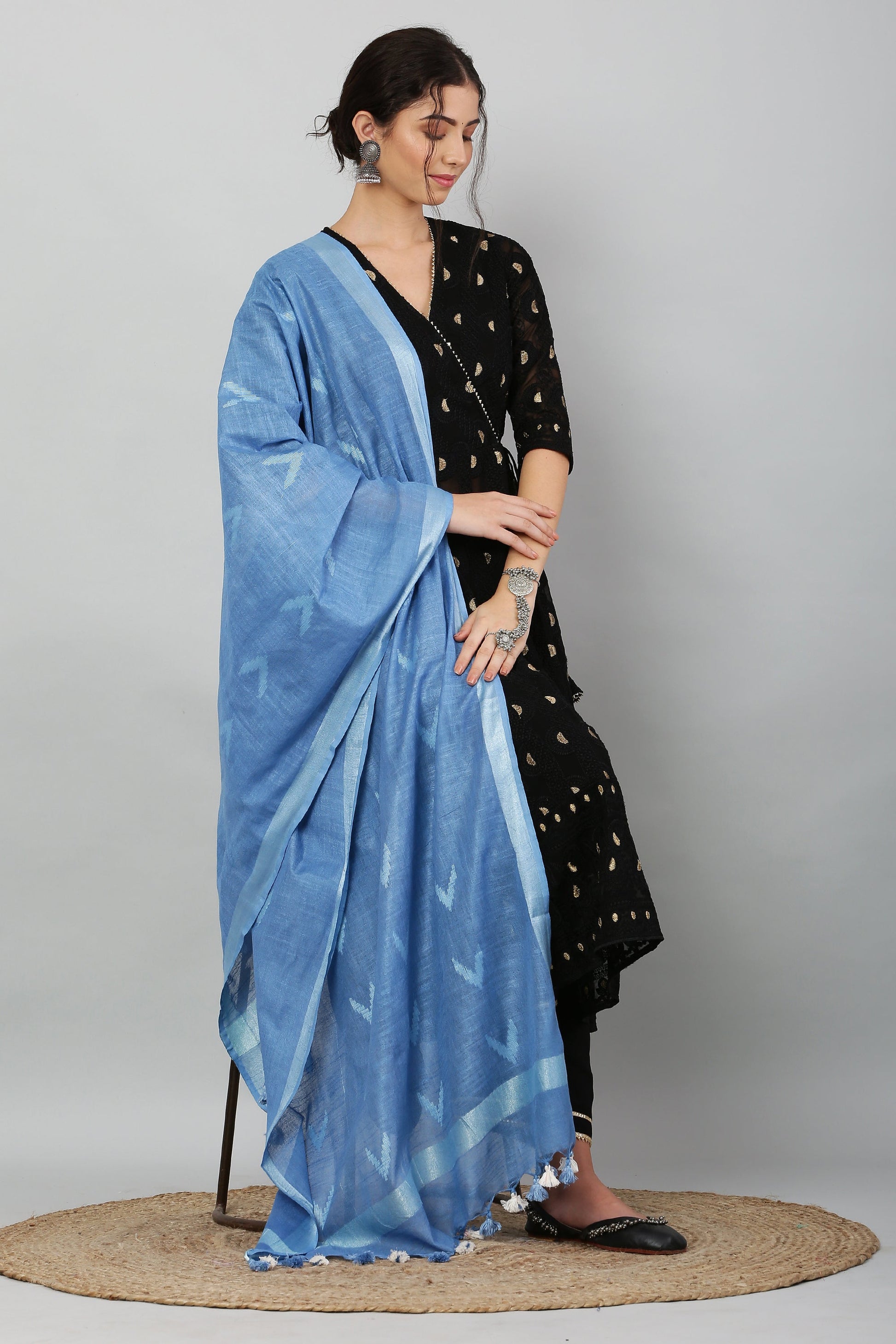 This is a Handloom product. Purely our #weavers beauty. Weaved the Ikkat Buta in dupatta to give it unique touch. Tasseled Border being added for the classy look.