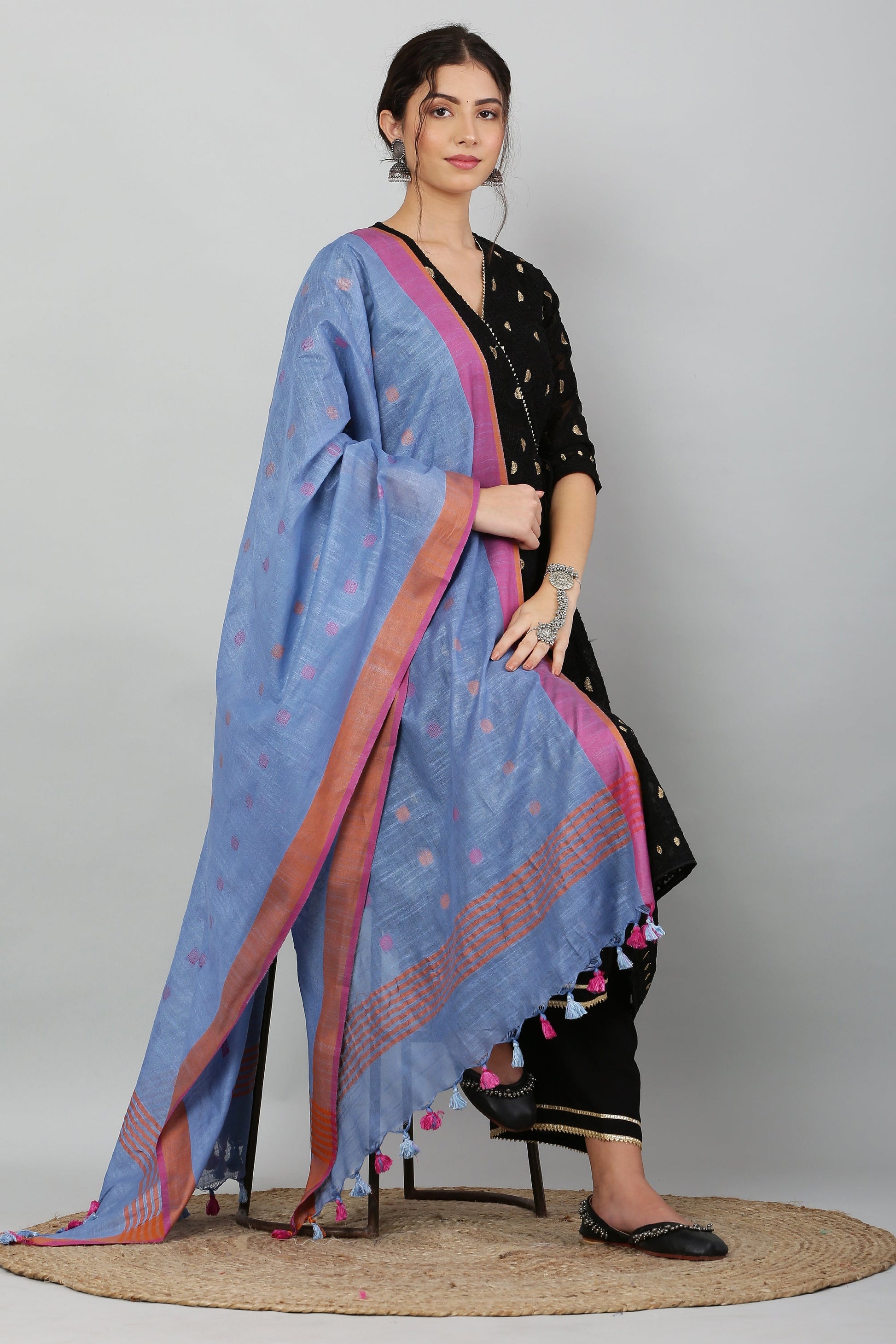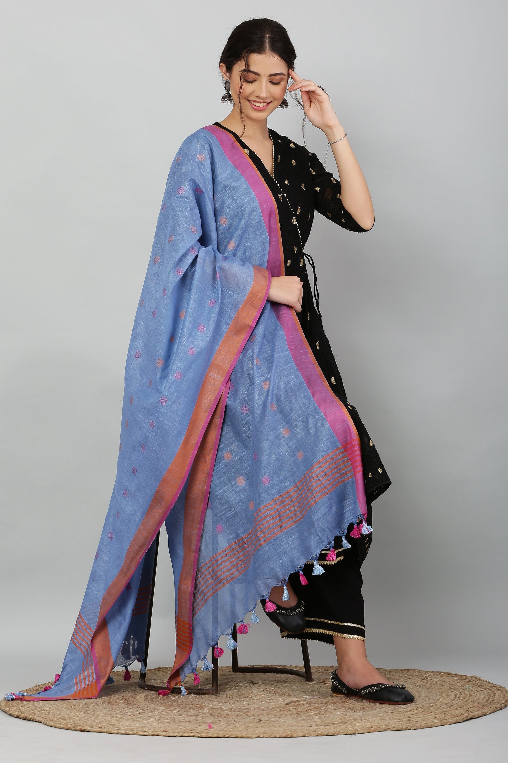 Dupatta -Cotton Slub -Blue