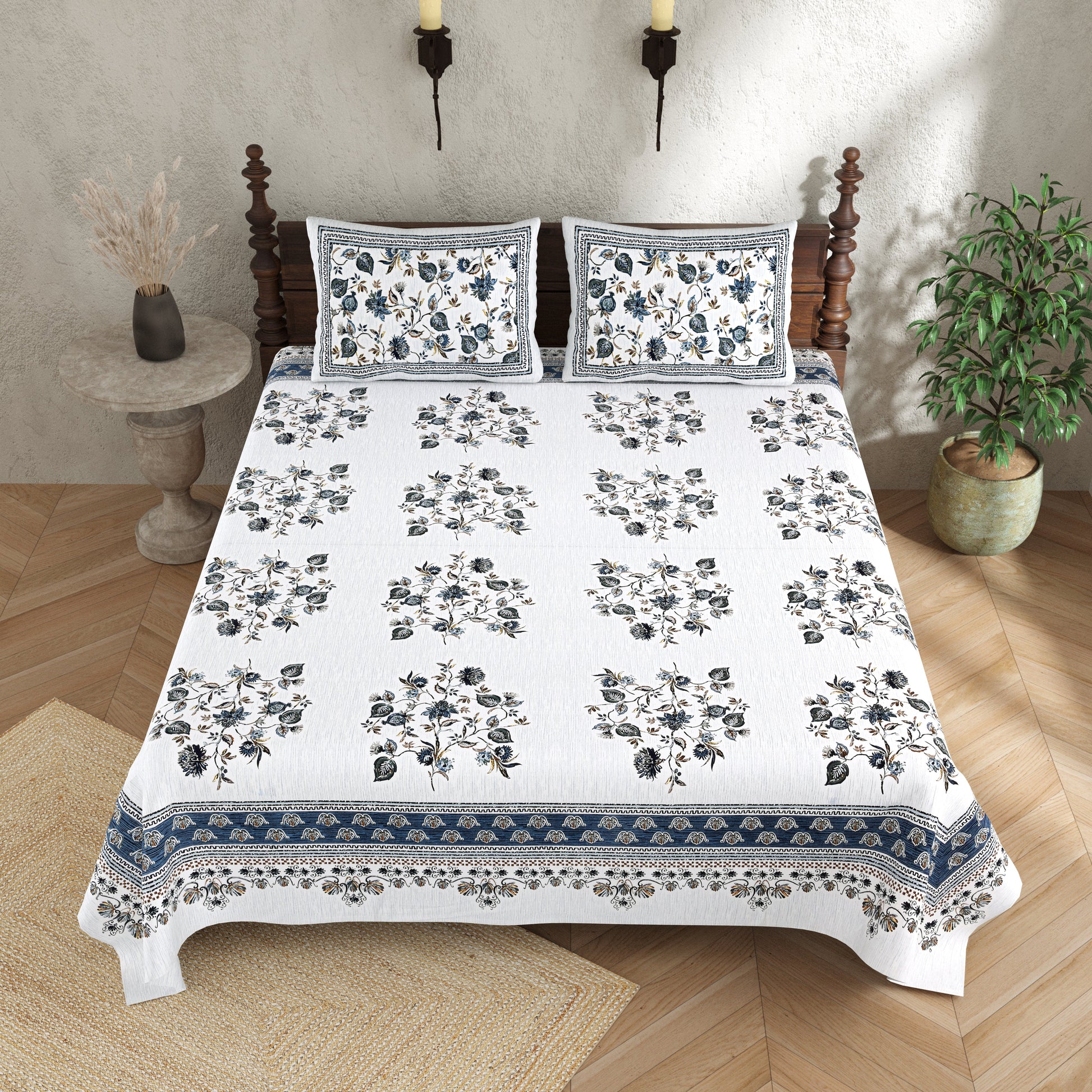 Pure Cotton Print Bedsheet-Double Bed-Multi Floral - Blue